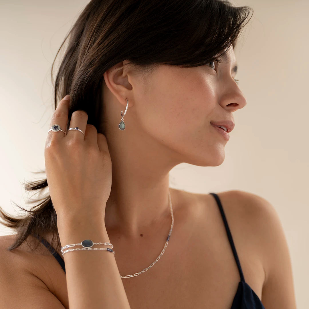 Entdecke den Admiring Labradorit Silberohrring aus unserer Timeless Treasures Kollektion. Dieser Ohrring hat eine hochwertige, versilberte Fassung mit einem facettierten, tropfenförmigen Labradorit-Anhänger. Handgefertigt in Jaipur, Indien, der Edelsteinstadt, ist dieses Schmuckstück darauf ausgelegt, deine innere Kraft zu entfalten. Durch die Kombination von traditioneller Handwerkskunst mit einem zeitlosen Design ist dieser Ohrring mehr als nur ein Accessoire – er ist ein Glücksbringer, der dich auf deiner Reise begleitet.
