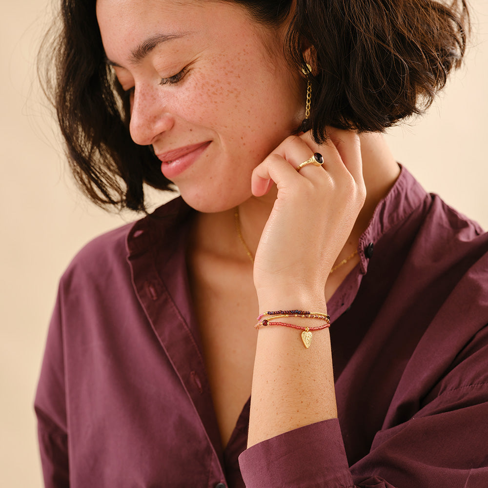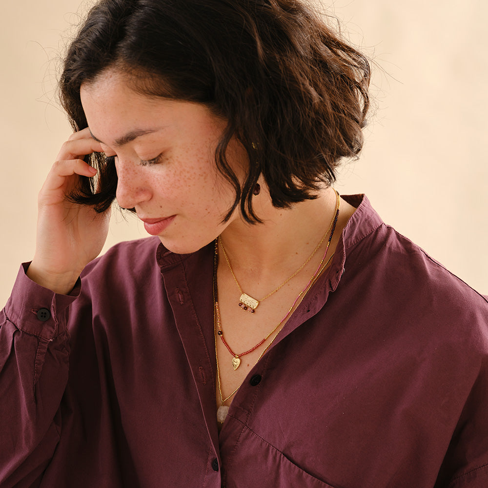 Braucht deine Batterie eine Aufladung? Granat ist eine kleine Energie-Bombe. Sie erinnert dich an deine Leidenschaft, deinen Geist, deine Stärke. Sie sind nicht verschwunden, sie machen nur ein Nickerchen. Wecke sie auf mit unserer Adventurous Granat-Halskette. Eine Art Selbstfürsorge, symbolisiert durch das Herzsymbol.