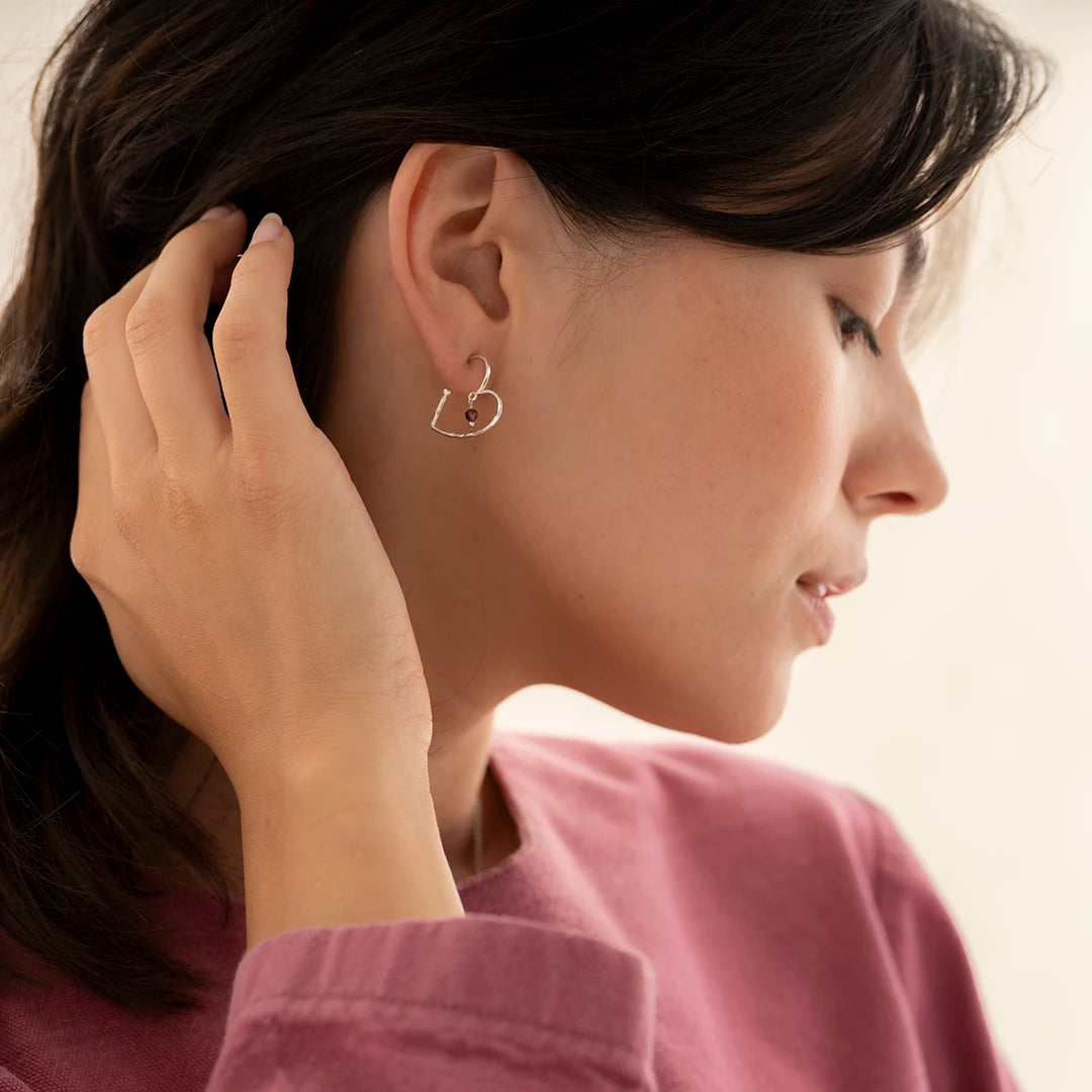 Entdecke die versilberten Cheery Granat Ohrringe, die mit ihrem verspielten Design und der schönen Farbe des Granats Freude ausstrahlen. Diese Ohrringe haben einen herzförmigen Anhänger mit einem facettierten Granat-Anhänger. Perfekt für jede Gelegenheit. Der Edelsteinschmuck von A Beautiful Story verleiht Bedeutung und begleitet dich stets auf deiner Reise.