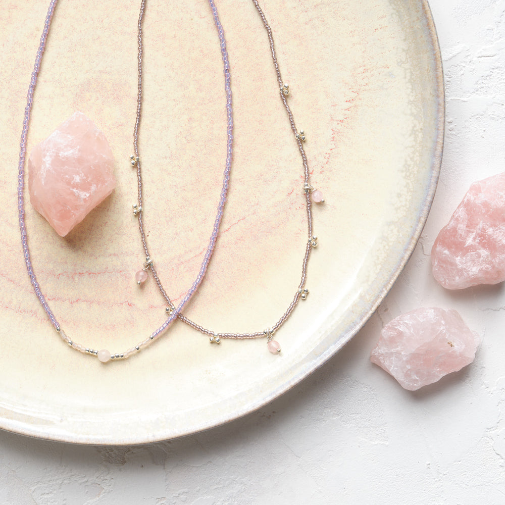 Lerne die silberfarbige Excitement Rosenquarz Halskette von A Beautiful Story kennen. Diese wunderschöne Halskette ist handgefertigt und besteht aus Glasperlen, Messing, einem Rosenquarz-Edelstein und einem versilberten Verschluss. Mit einer verstellbaren Länge von 40-43 cm.