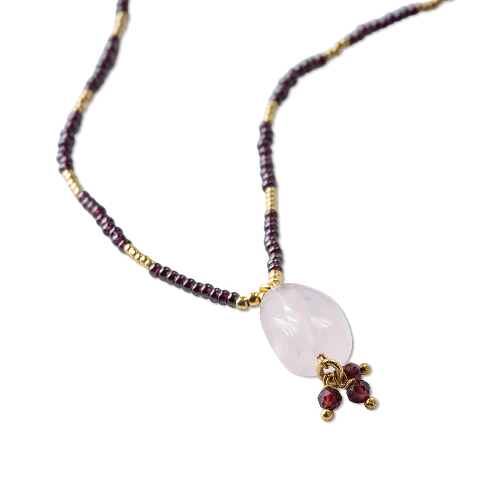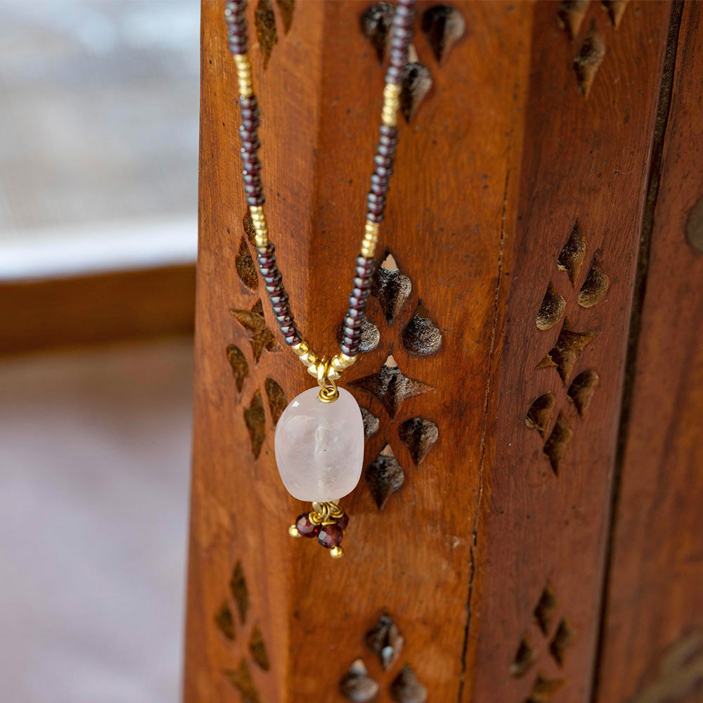 23 Minuten Arbeit, unzählige Stylingmöglichkeiten. Mit einem großen polierten Rosenquarz-Edelstein ist unsere Fabulous Rosenquarz Halskette ein trendiger Eyecatcher. Kombiniert mit schimmerndem Granat erzählt sie von Liebe, Energie und Kreativität. Die Geschichte deines Lebens.