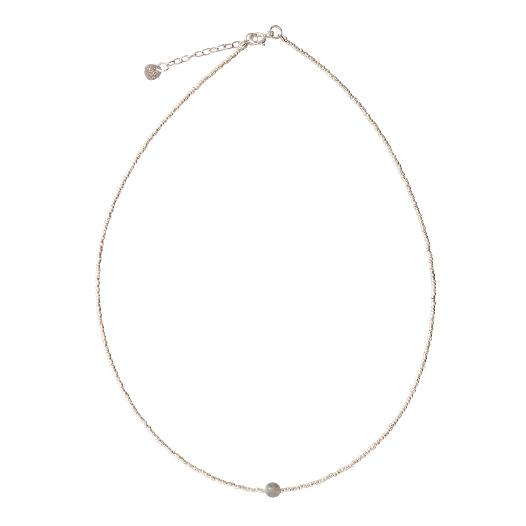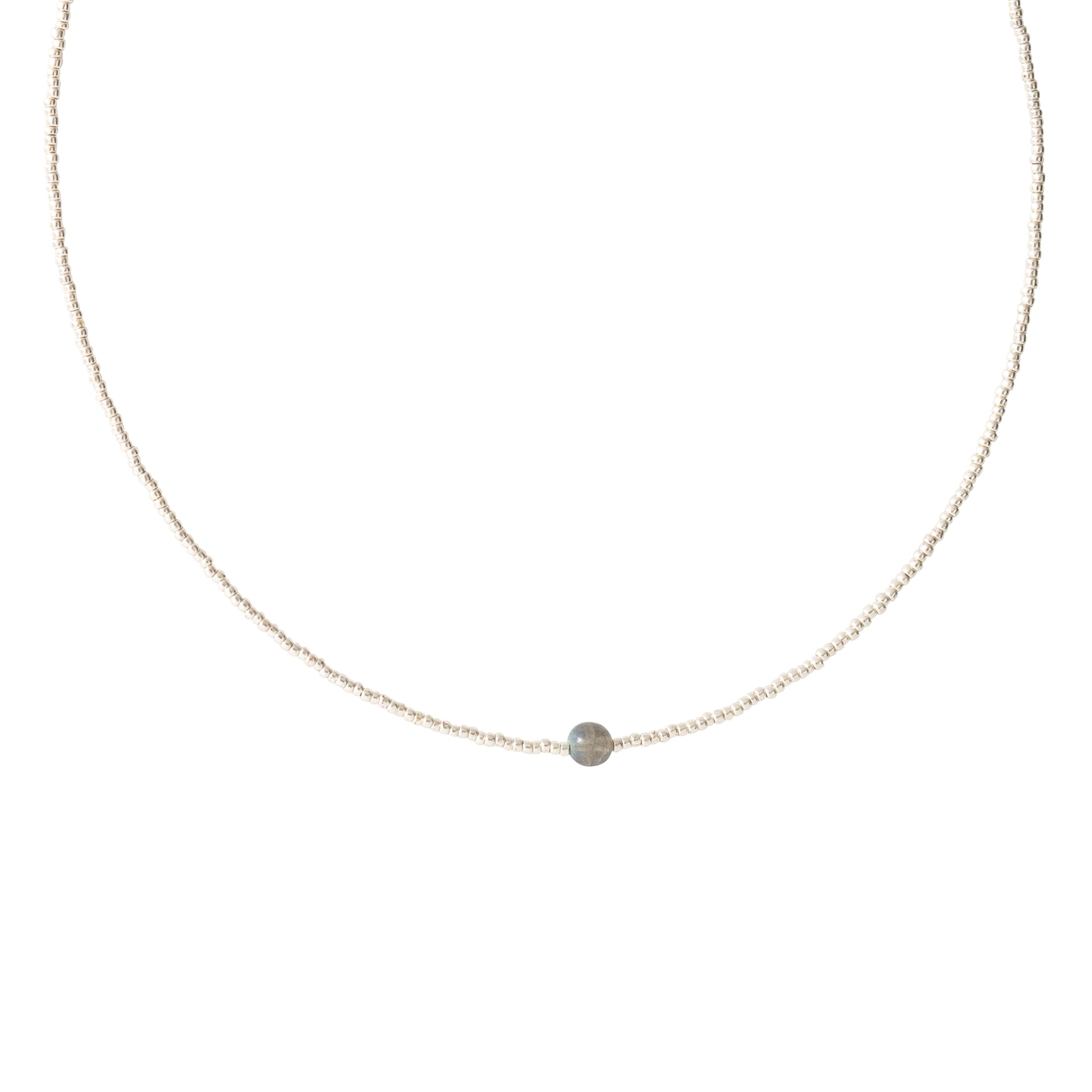 Entdecke die silberfarbige Flora Labradorit Halskette von A Beautiful Story. Diese wunderschöne Halskette ist aus Glasperlen handgefertigt und mit einem kleinen Labradorit-Edelstein versehen. Diese kurze Halskette kann zu jedem Anlass getragen werden.