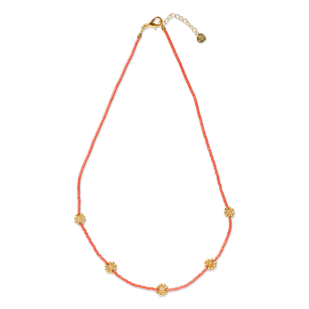 Entdecke unsere vergoldete Flourish Citrin Halskette. Die bunten Glasperlen und kleinen Citrin Edelsteine verbinden sich zu 5 kleinen Blumen. Der vergoldete Verschluss verleiht der Halskette eine verstellbare Länge von 40 - 43 cm. Der Citrin füllt jeden Moment mit Glück und Freude.