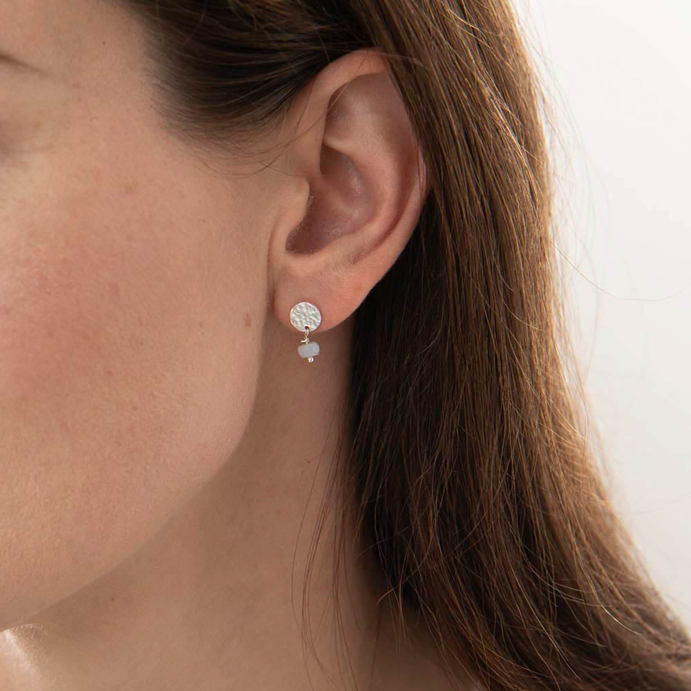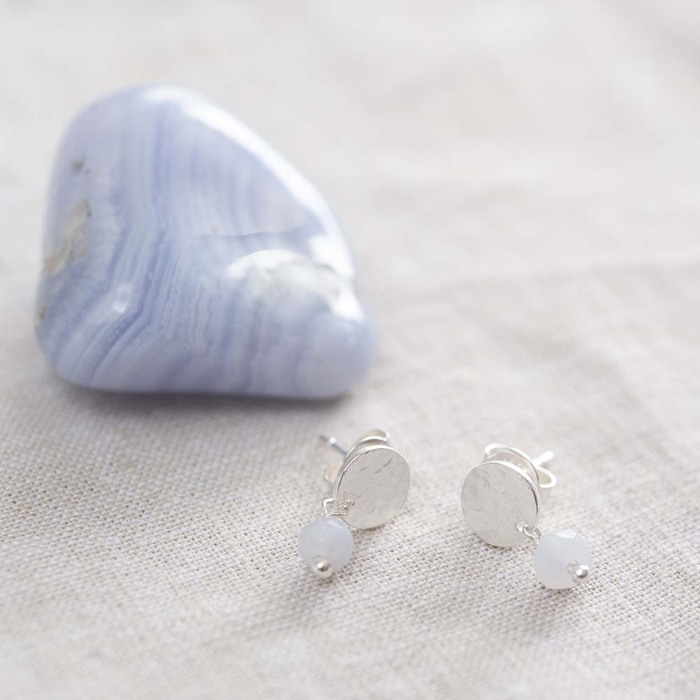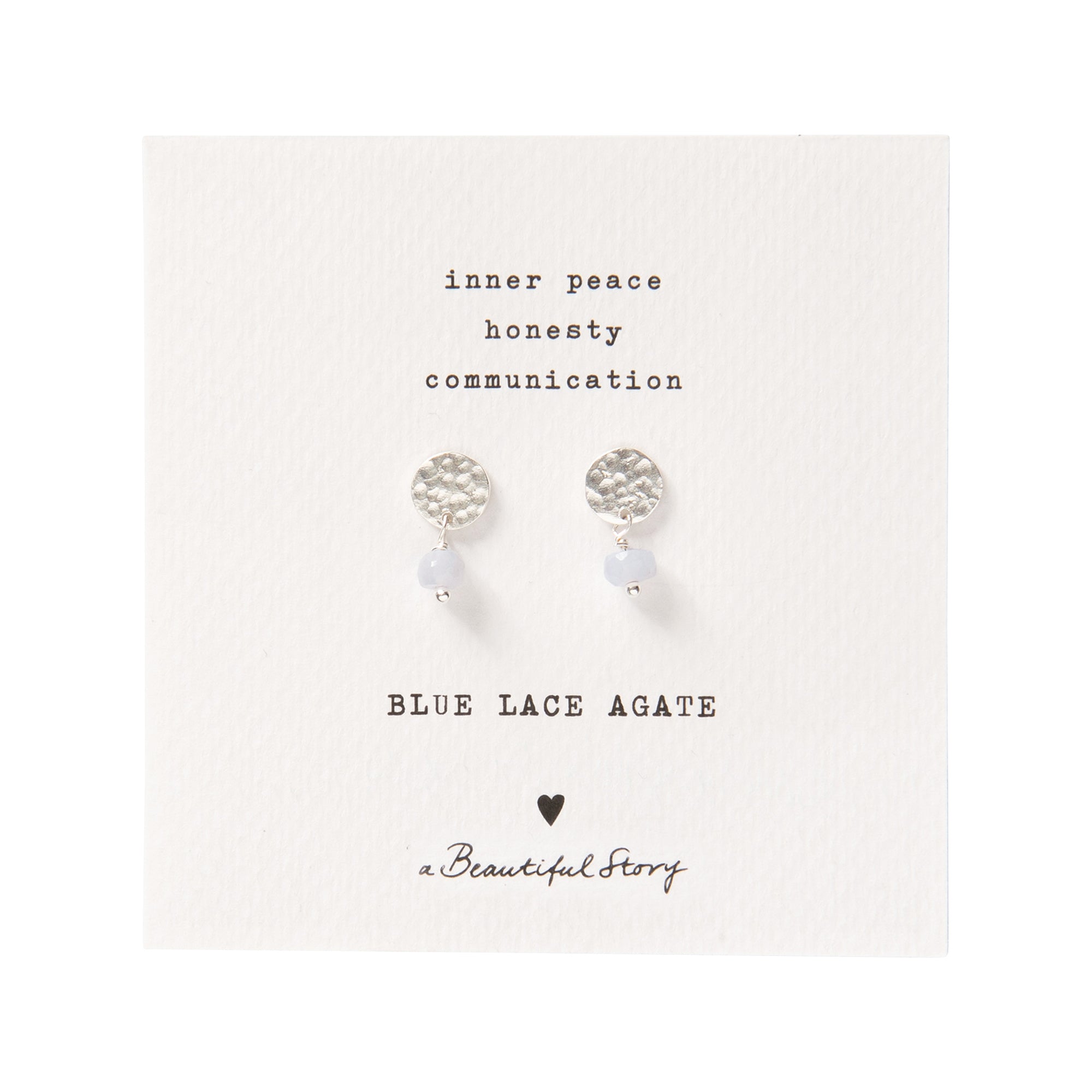 Mini Coin Blauer Spitzenachat versilberte Ohrringe