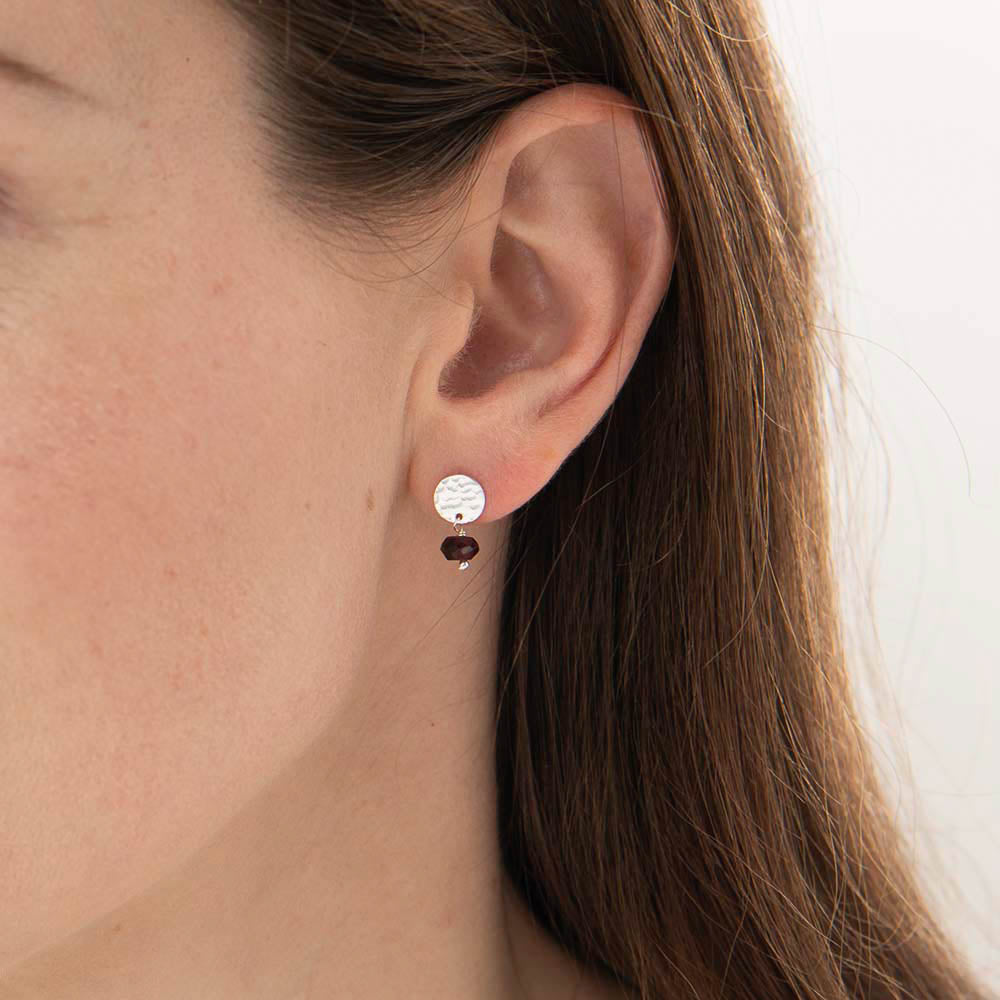 Die versilberten Mini Coin schwarzer Onyx Ohrringe von A Beautiful Story sind kleine Ohrstecker mit einer Länge von 1,5 cm. Die handgefertigten Ohrstecker bestehen aus einer silberfarbigen Münze und einem kleinen schwarzen Onyx-Edelstein.