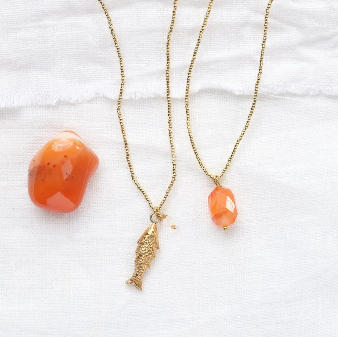 Unsere goldfarbige Paradise Mondstein Halskette ist eine klassische Schönheit. Diese lange Halskette ist mit goldfarbigen Glasperlen und einem Fisch-Anhänger mit einem runden Mondstein gestaltet, der für seine fördernde Wirkung auf emotionales Gleichgewicht und Klarheit bekannt ist. Perfekt zum Kombinieren mit anderen Stücken aus unserer Kollektion für einen stilvollen Look. Der Edelsteinschmuck von A Beautiful Story begleitet dich stets auf deiner Reise.
