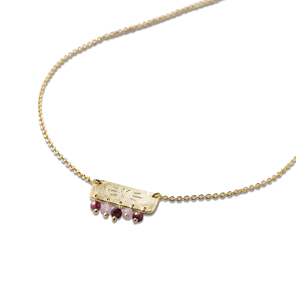 Wir verstehen total, warum unsere Sanity Granat Rosenquarz Halskette dein Herz schneller schlagen lässt. Mit der energetischen Präsenz von Granat und Rosenquarz als „Stein der Liebe“ wirst du mit einer kraftvollen Lebensenergie erfüllt. Die vergoldete Herzplakette wärmt dein Inneres und verleiht deiner Haut gleichzeitig einen goldenen Schimmer.