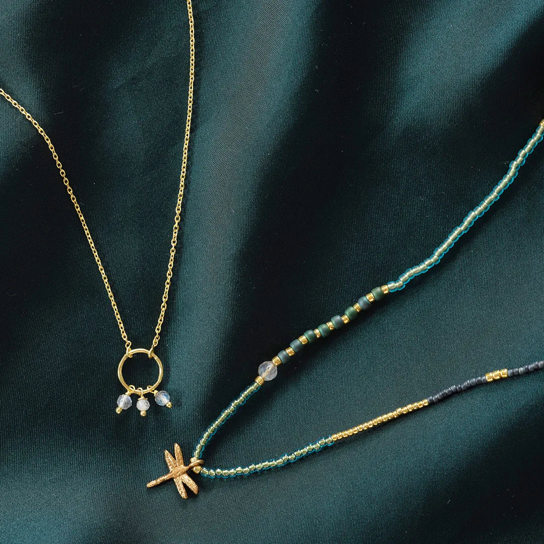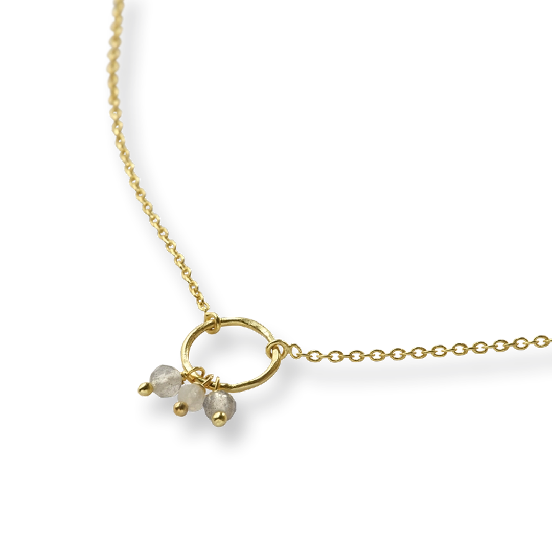 Mit einem subtilen, eleganten Stück wie der vergoldeten Sentiment Labradorit Mondstein Halskette kannst du jedes Outfit stilvoll ergänzen. Die Kombination aus einem kreisförmigen Anhänger mit 3 kleinen Edelsteinen schafft einen stylischen und raffinierten Look, der perfekt für jede Gelegenheit ist. Der Schmuck von A Beautiful Story verleiht Bedeutung und begleitet dich stets auf deiner Reise.