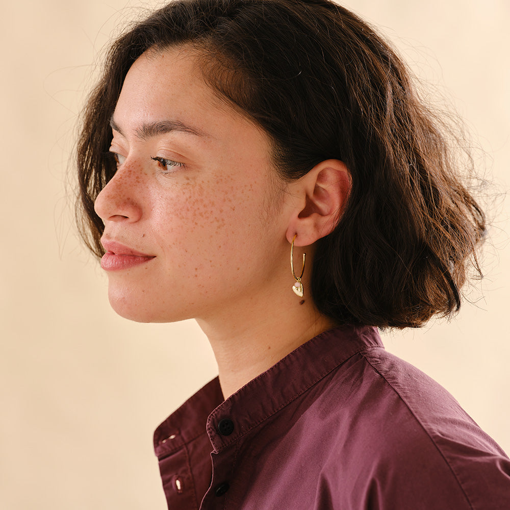 Vergoldete Creolen für Liebe, Harmonie und Freundlichkeit. Die Symbolik hinter den Solidarity Rosenquarz Ohrringen ist genauso schön wie das Design selbst. Dreiviertel-Creolen mit zarten Anhängern in Mini-Rosenquarz und einer vergoldeten Herzanhänger machen ein trendiges Statement mit Bedeutung. Wow, so hübsch…
