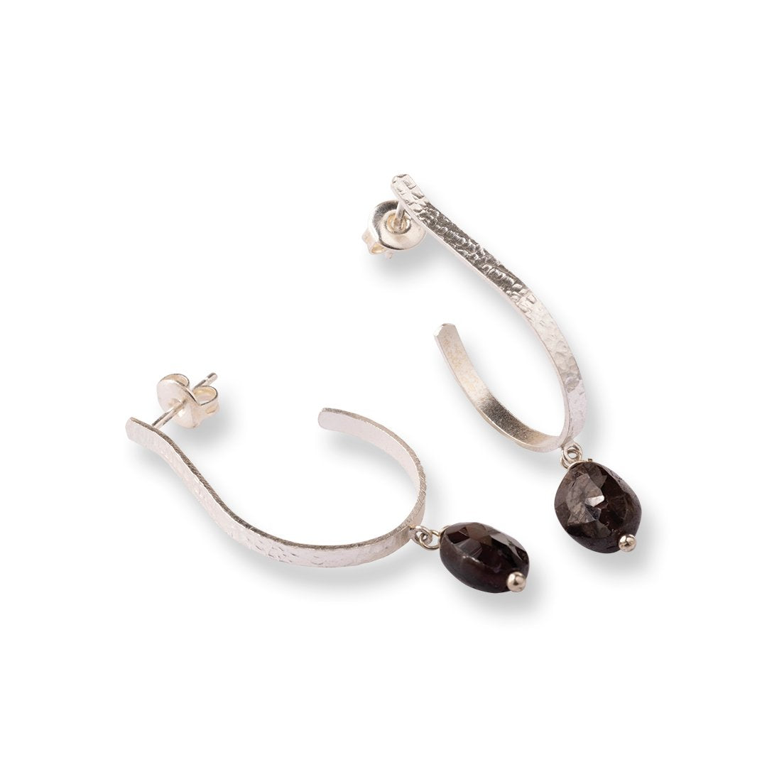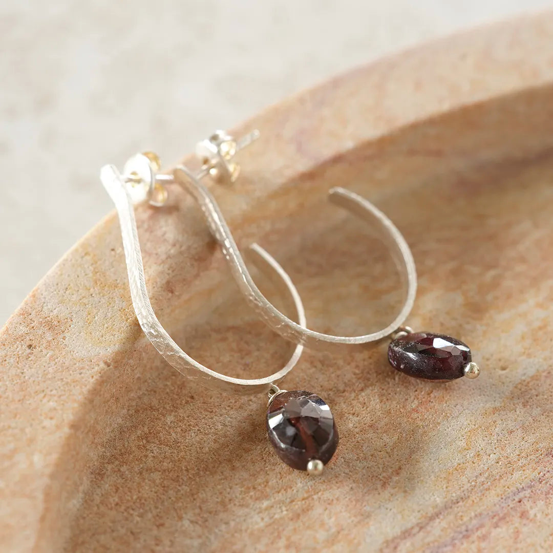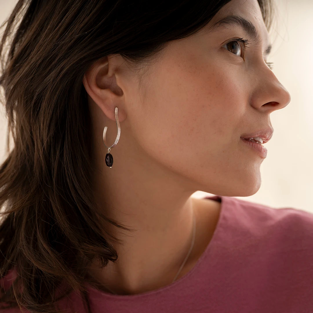 De Attracted Granaat Verzilverde Oorbellen hebben een hoepelontwerp met een gefacetteerde ovaal granaat edelsteen, die kracht, energie en creativiteit symboliseert. Perfect om te combineren met andere sieraden uit onze collectie voor een verfijnde look. A Beautiful Story edelsteen sieraden begeleiden je op je pad.