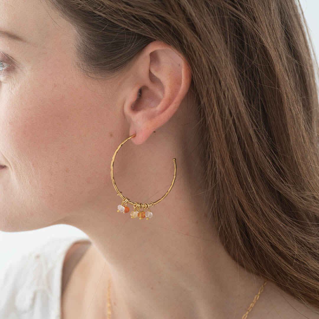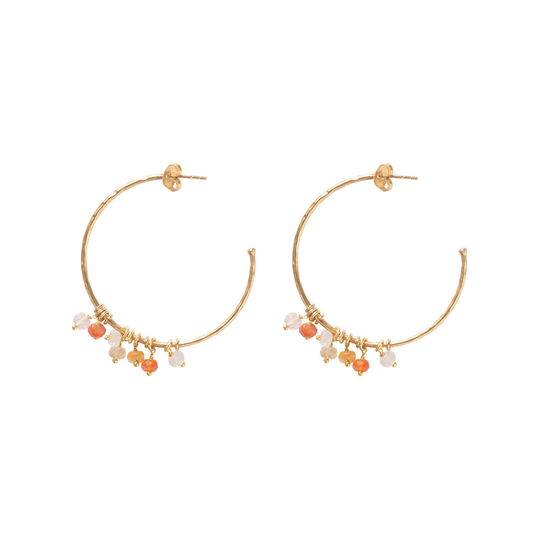 Deze Aurora Rozenkwarts Carneool Citrien Vergulde Oorbellen van A Beautiful Story zijn gemaakt van verguld messing en voorzien van kleine rozenkwarts, carneool en citrien edelstenen. De binnenmaat van de oorbellen is 5 centimeter.
