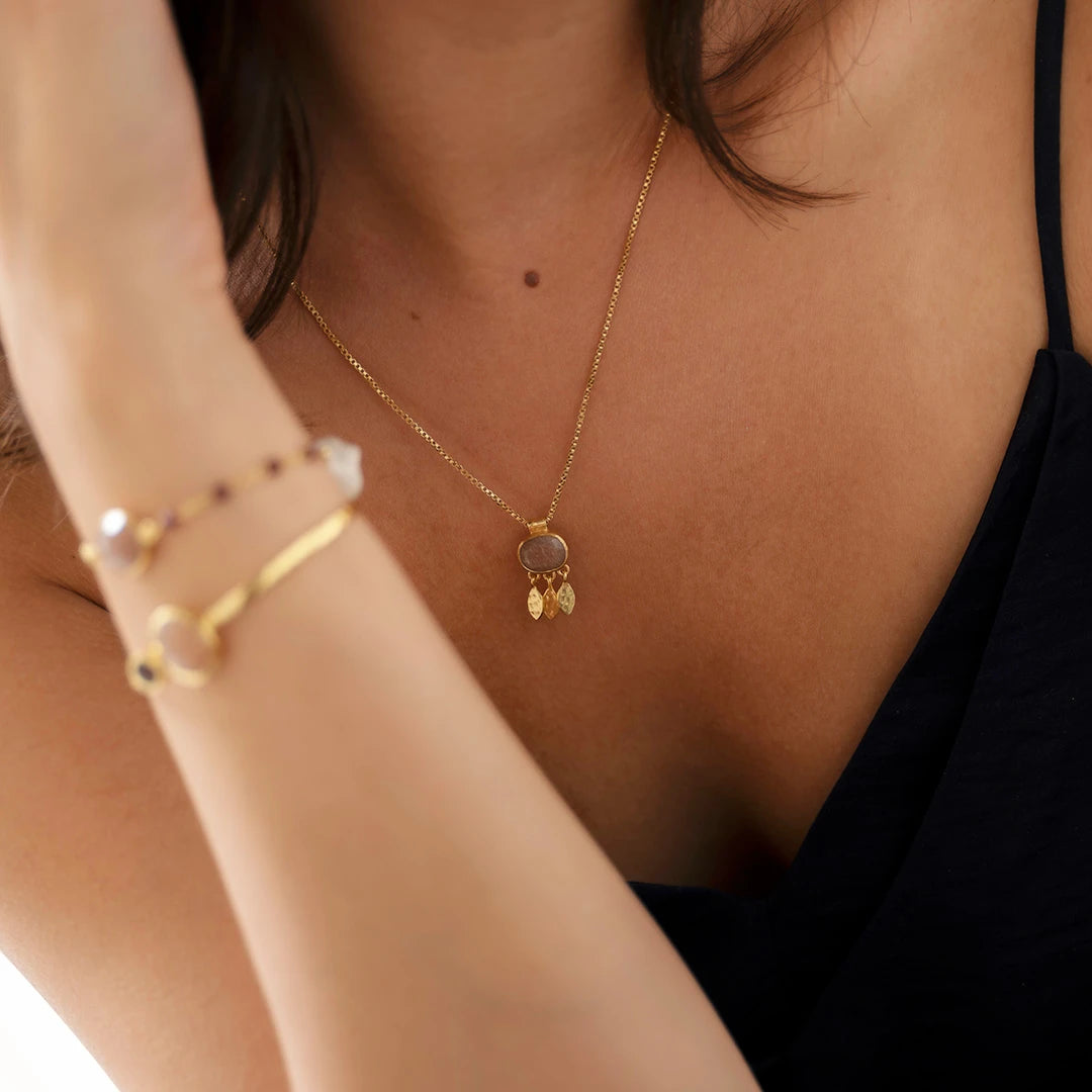 Authentic Perzik Maansteen Vergulde Ketting Authentic Perzik Maansteen Vergulde Ketting