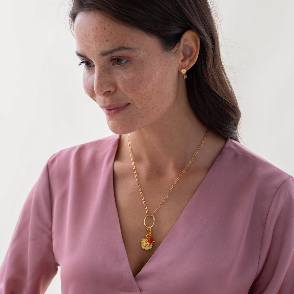 Ontdek de Carneool Edelsteen Vergulde Hanger uit de Mix & Match collectie van A Beautiful Story. Deze prachtige hanger is handgemaakt van verguld messing en bevat een betekenisvolle carneool edelsteen. Met een lengte van 2,5 centimeter is de hanger subtiel en stijlvol. Stel je persoonlijke ketting samen door hangers en bedels te combineren met één van de Mix & Match kettingen. Met de S-sluiting hang je gemakkelijk jouw favoriete bedels aan de ketting.