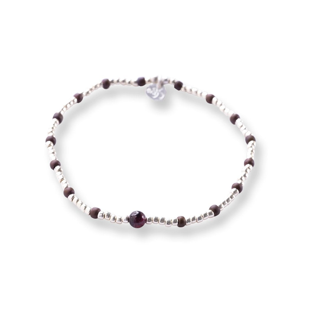 Maak kennis met de Clever Granaat Zilverkleurige Armband. Deze armband is gemaakt met zilverkleurige glaskralen en een granaat edelsteen op een elastische draad. Makkelijk te dragen voor elke dag en perfect om te combineren met andere sieraden voor een verfijnde look. A Beautiful Story edelsteen sieraden begeleiden je op je pad.