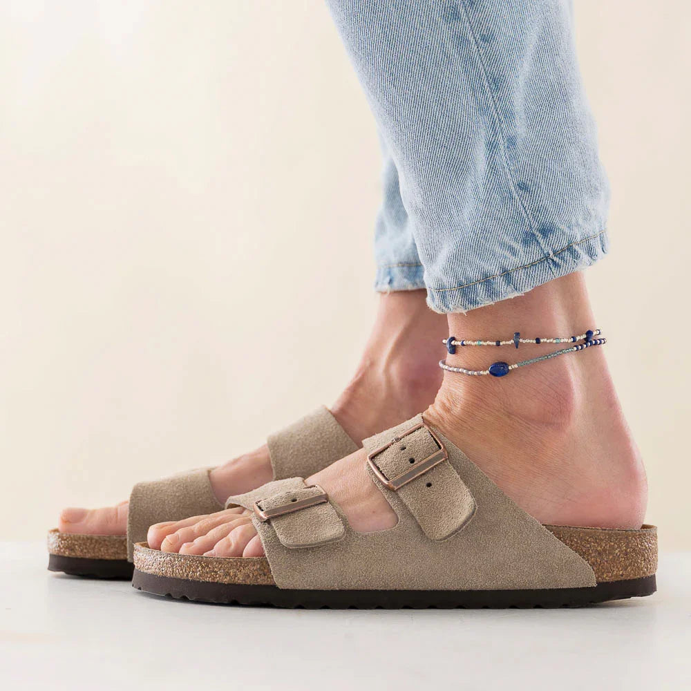 Het Liberation Lapis Lazuli Zilverkleurig Enkelbandje is handgemaakt met een gladde en kleine lapis lazuli edelsteen. De glaskralen in blauw, zilver en groen zijn geregen op een katoenen draad met een schuifknoop. Hierdoor is het enkelbandje verstelbaar van 22 tot 30 centimeter. Lapis lazuli is de steen van verbindingen. Met lapis lazuli sta je in je kracht en durf je te zeggen wat je op je hart hebt.