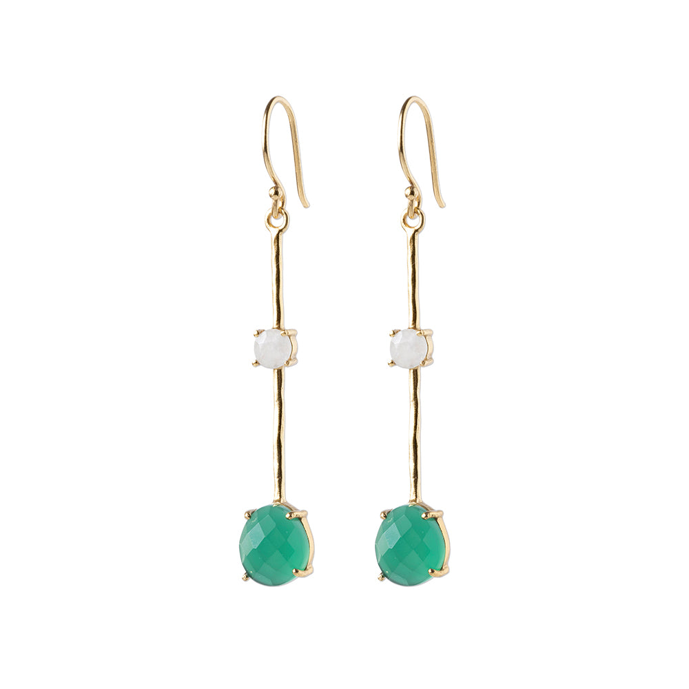 Geen pracht zonder kracht, geen persoonlijke ontwikkeling zonder focus. Dat, plus een stijlvolle uitstraling, is wat de Magnificent Groene Onyx Maansteen Oorbellen je willen meegeven. Met facetgeslepen groene onyx en maansteen aan een slanke vergulde staafhanger. Tijdloos, stijlvol en van hoge kwaliteit. Gemaakt om eindeloos van te genieten. Met liefdevolle precisie handgemaakt in Jaipur, de edelstenenhoofdstad van India.