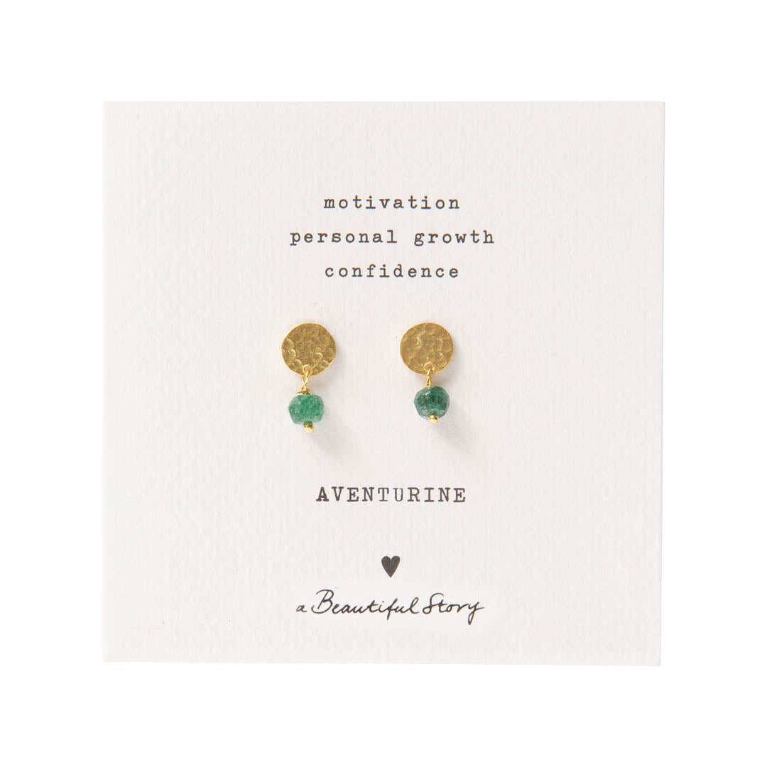 Mini Coin Aventurijn Vergulde Oorbellen Mini Coin Aventurijn Vergulde Oorbellen