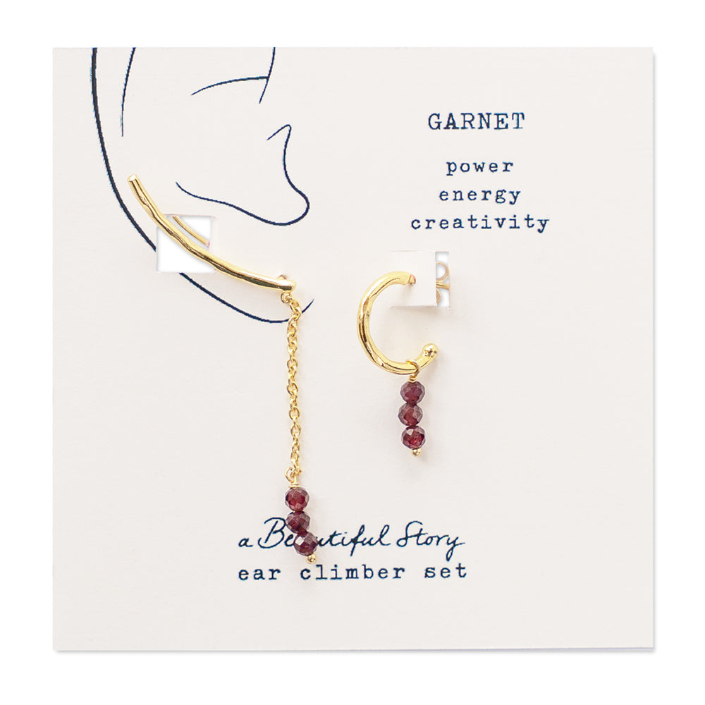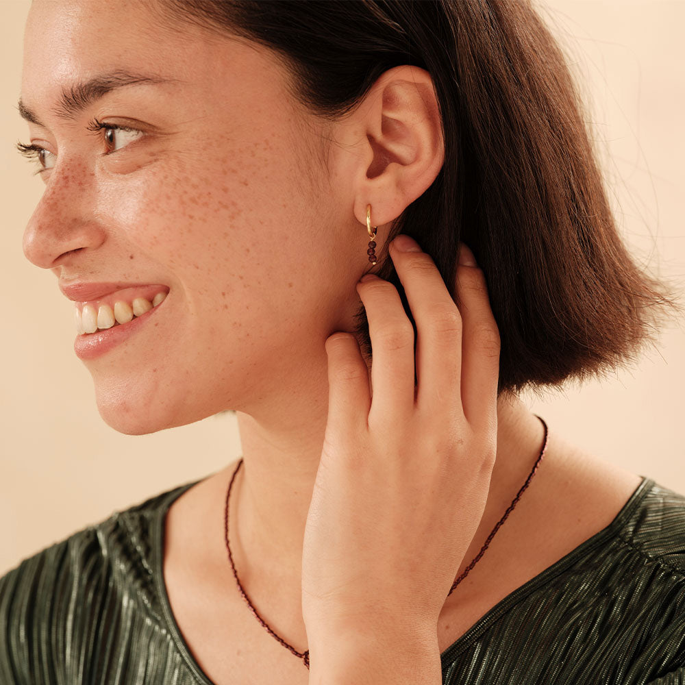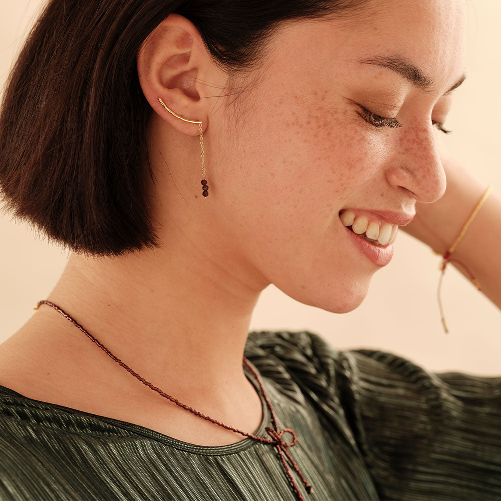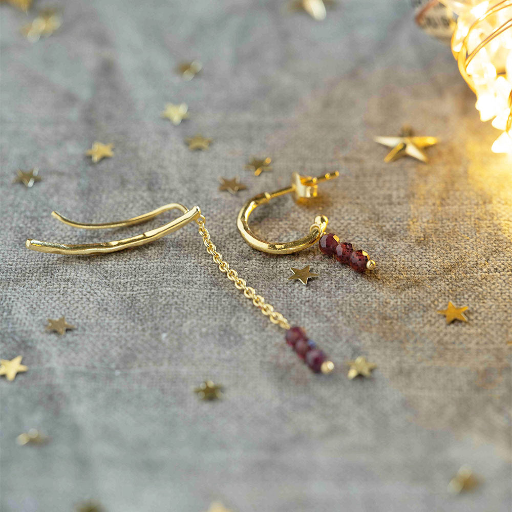 Extra uitpakken voor een sprankelende party look? De Miraculous Granaat Oorbellen Set is er voor gemaakt. Enerzijds een vergulde ‘vleugel’ die de rand van je oorschelp volgt, anderzijds een gebogen oorsteker - beiden voorzien van drie facetgeslepen granaten. Laat je kracht, energie en creativiteit maar stromen!