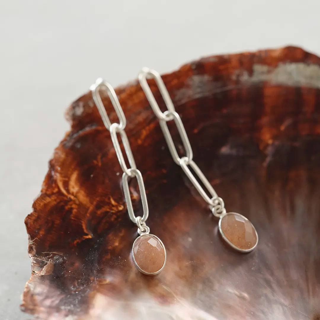 Motivation Perzik Maansteen Verzilverde Oorbellen Motivation Perzik Maansteen Verzilverde Oorbellen