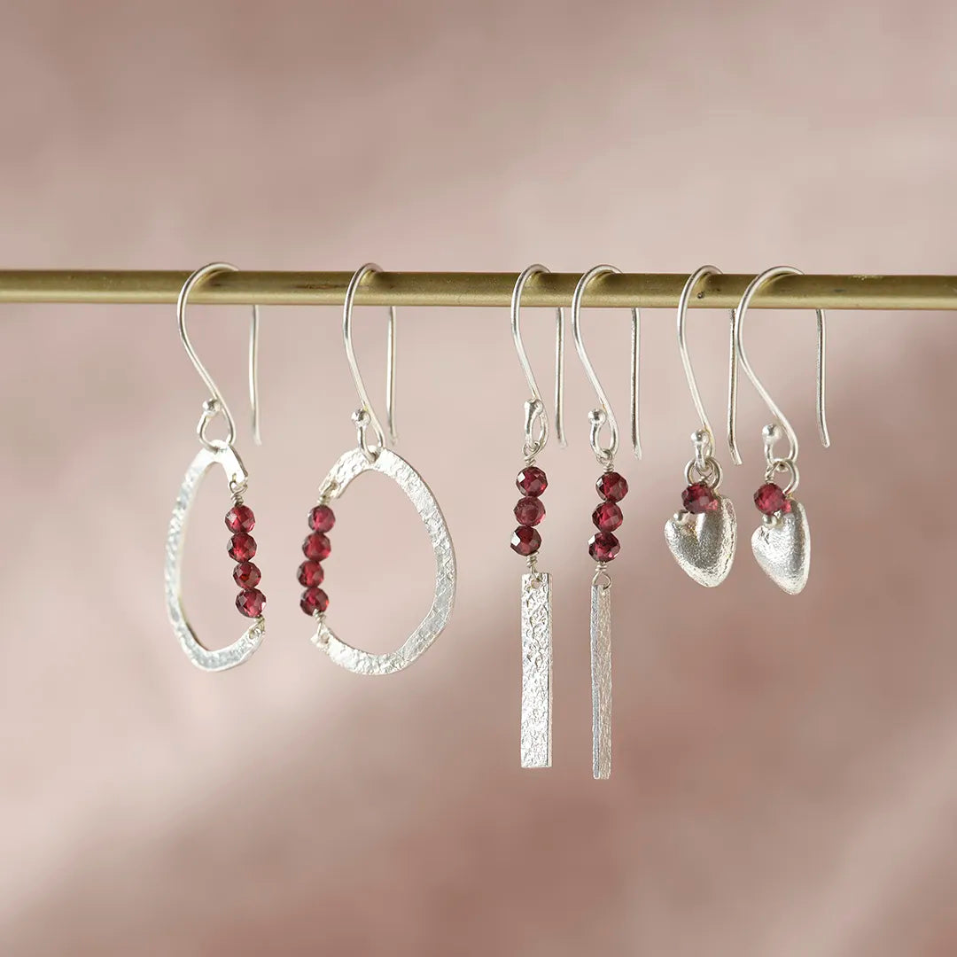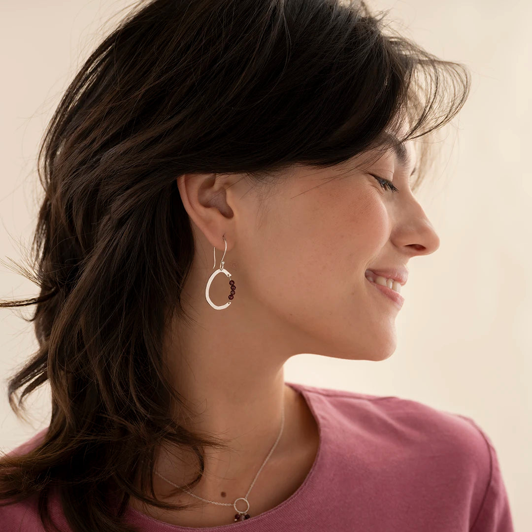 Met een sieraad als de Optimism Granaat Verzilverde Oorbellen kun je alle kanten op. Het speelse ontwerp, met 3 granaat edelstenen in de oorring, geeft een verrassend detail aan elke outfit. A Beautiful Story sieraden geven betekenis en ondersteunen je op je pad.