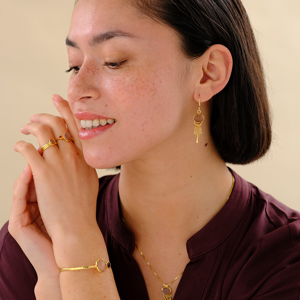 Onze Praising Perzik Maansteen Oorbellen dragen is liefdevolle energie uitdragen. Op een stijlvolle manier, gekenmerkt door tijdloze elegantie. Bevestigd aan de facetgeslepen perzik maansteen reflecteren verfijnde gehamerde staafjes het licht. Tijdloze stijl van hoge kwaliteit. Gemaakt om eindeloos van te genieten. Met liefdevolle precisie handgemaakt in Jaipur, de edelstenenhoofdstad van India.