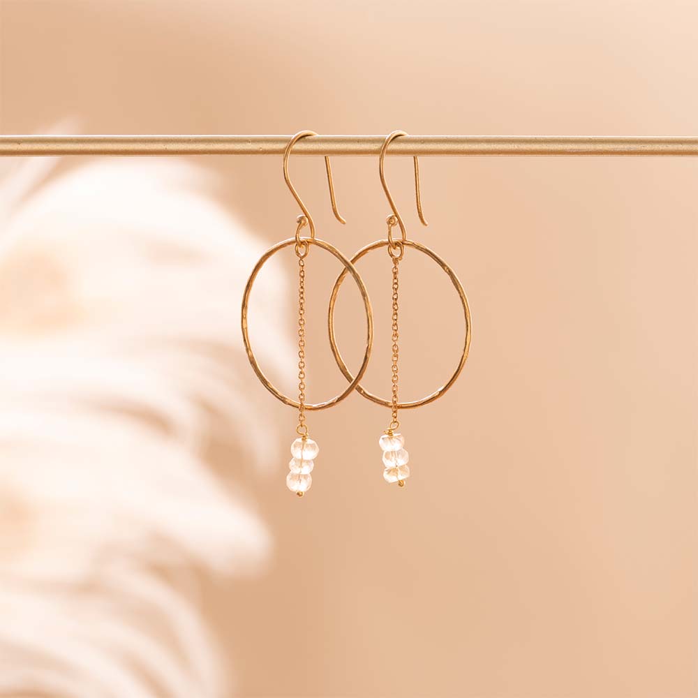 Ervaar een tijdloze elegantie met de Talent Citrien Vergulde Oorbellen. Deze oorbellen zijn gemaakt van verguld messing en hebben drie kleine citrien edelstenen. De lengte van 6 centimeter maakt de oorbellen geschikt voor elke gelegenheid.