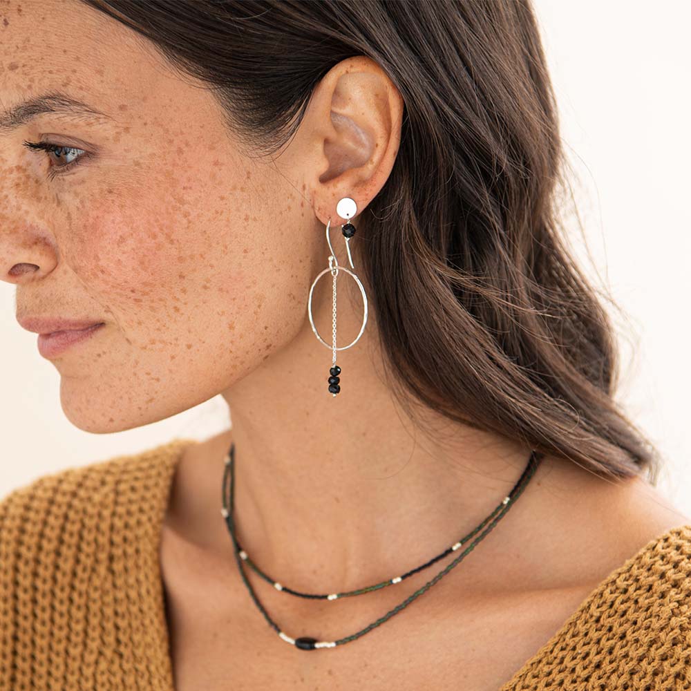 Ervaar een tijdloze elegantie met de Talent Zwarte Onyx Verzilverde Oorbellen. Deze oorbellen zijn gemaakt van verzilverd messing en hebben drie kleine zwarte onyx edelstenen. De lengte van 6 centimeter maakt de oorbellen geschikt voor elke gelegenheid.