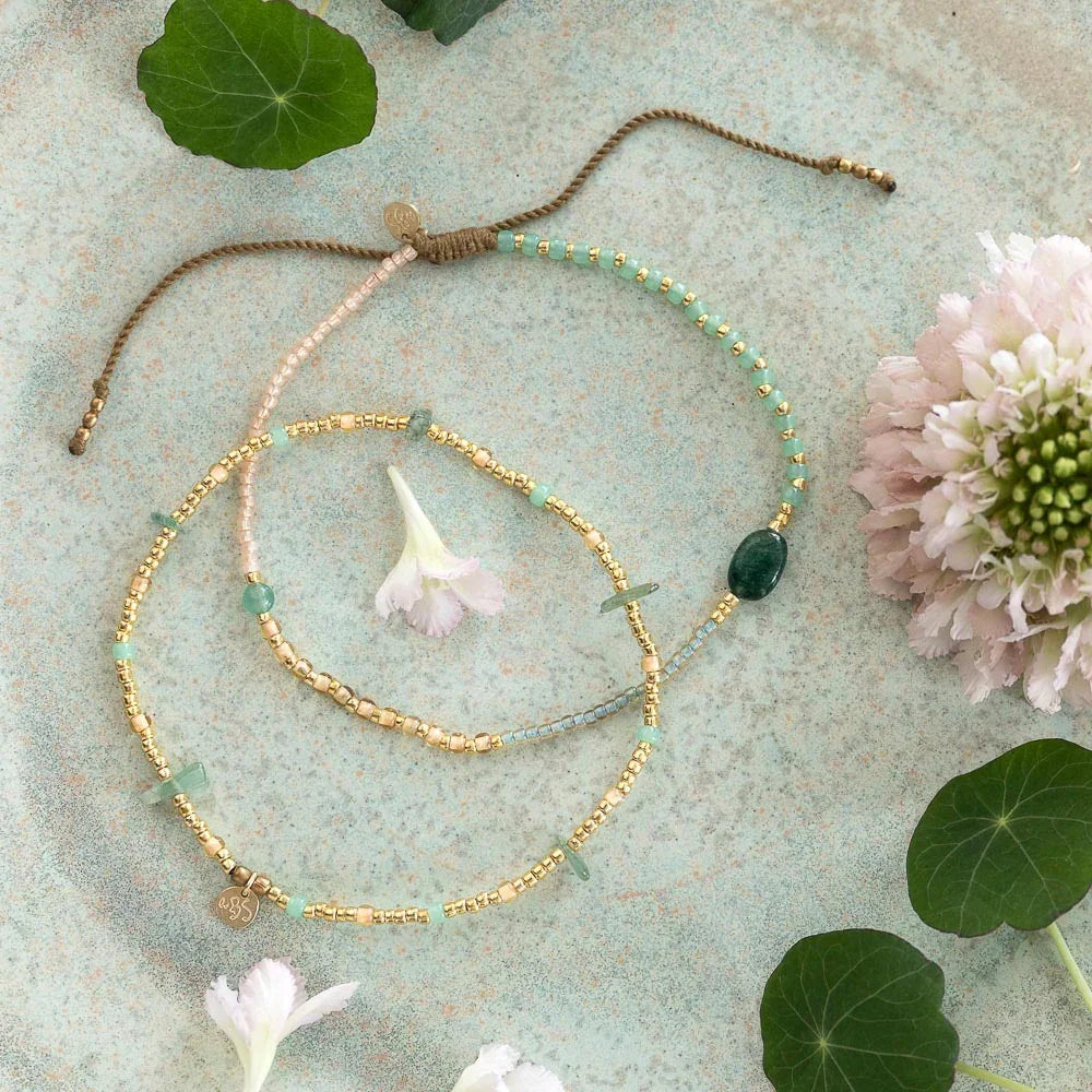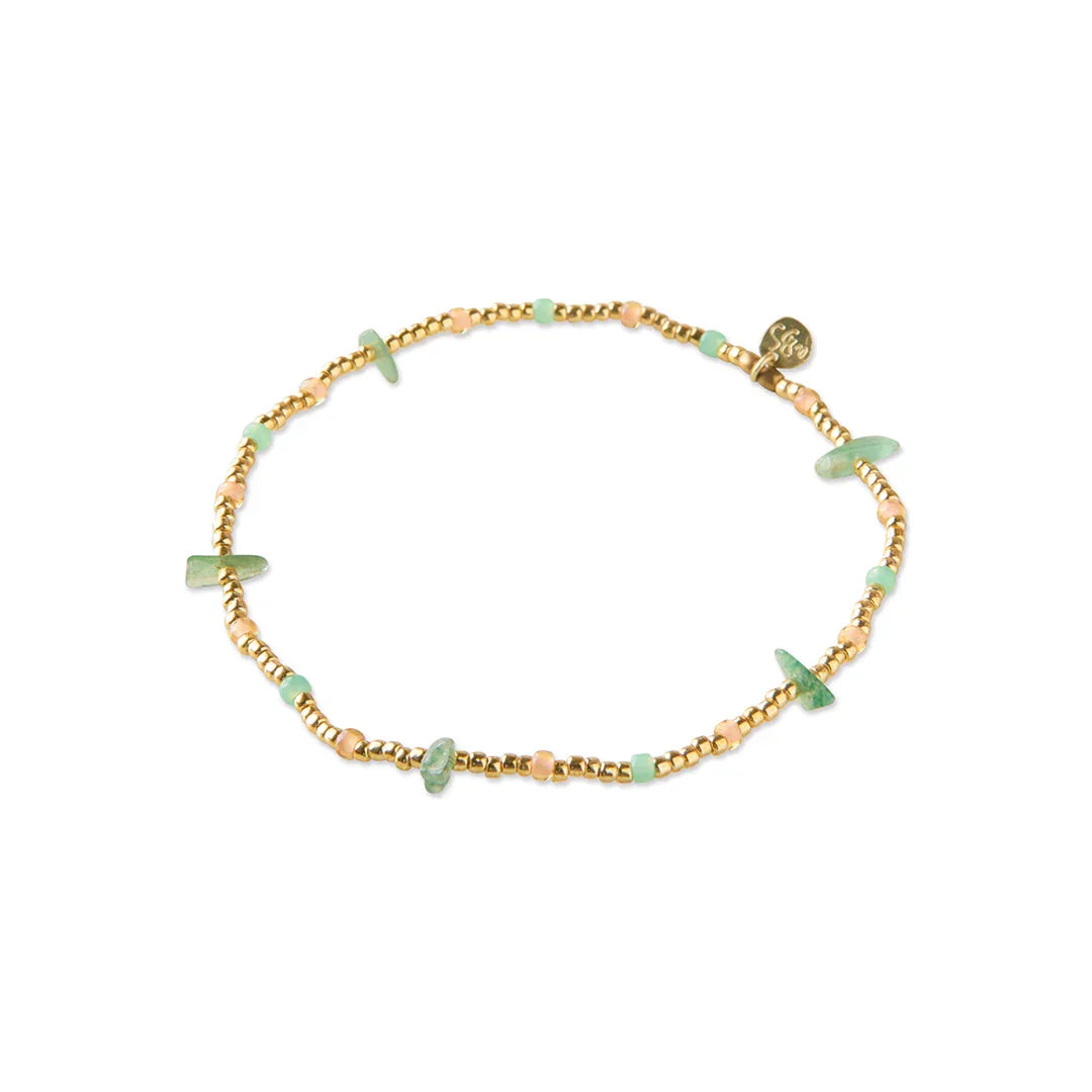 Het Thoughtful Aventurijn Goudkleurig Enkelbandje is handgemaakt met groen, perzik en goudkleurige glaskralen. De ruwe, kleine aventurijn edelstenen en gekleurde glaskralen zijn geregen op elastiek. Zo is het enkelbandje makkelijk te dragen. Ga op avontuur met een onbezorgd hart en maak de reis van je leven. Met aventurijn ga je helemaal je eigen gang en trek je de wereld in. Je zet elke stap met plezier.