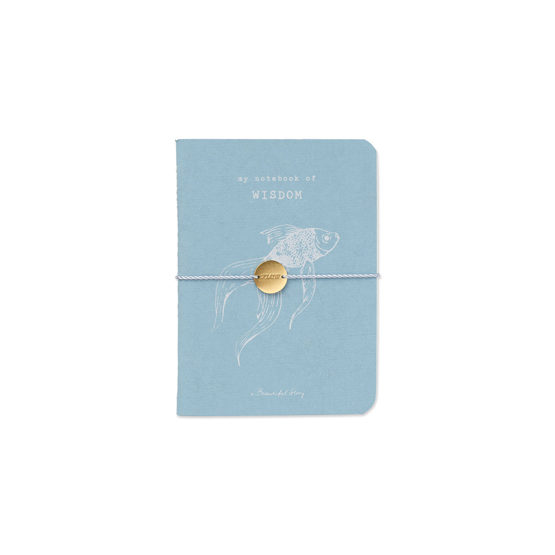 Maak kennis met ons Verhalenboek Vis. Een mini-notitieboek met 72 pagina's. De armband heeft een messing munt met de quote "flow" en een schuifknoop van katoendraad. Het verhalenboek is 8 cm x 11 cm (A7 formaat). De kaften van al onze boekjes zijn gemaakt van gerecycled materiaal. Reststukken uit de kledingindustrie worden omgezet naar deze mooie kaften.