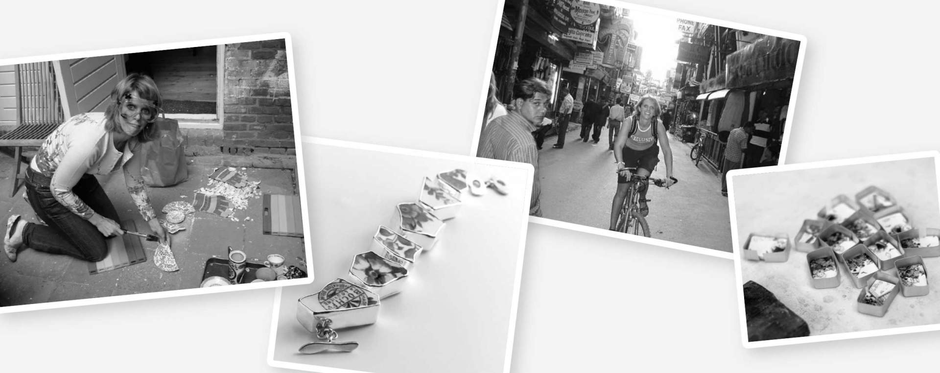 We throw the cup on the concrete floor and every shard gets a place on a bracelet. The first Lucky Bracelet is born. The magazine Happinez picks up our story with a six-page spread about Nepal and the bracelets. And then it happens… We receive tea cups from all over the Netherlands. Heirlooms, sometimes complete sets. Entire families want bracelets made from grandma’s rose tea cups. I’m smashing the cups to shards in my backyard, then send those shards to Nepal and they come back as jewelry.