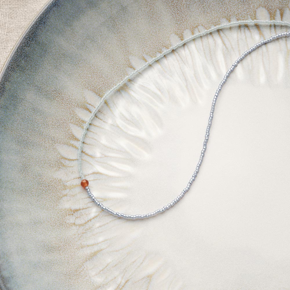 Don’t be fooled by the delicate appearance of the Awake Carnelian Necklace: it’s a power force that sets things in motion. Centered in a refined glass bead chain, the polished carnelian gemstone boosts your creativity and leaves you bubbling with energy. Quite impressive for such a small piece of jewelry.