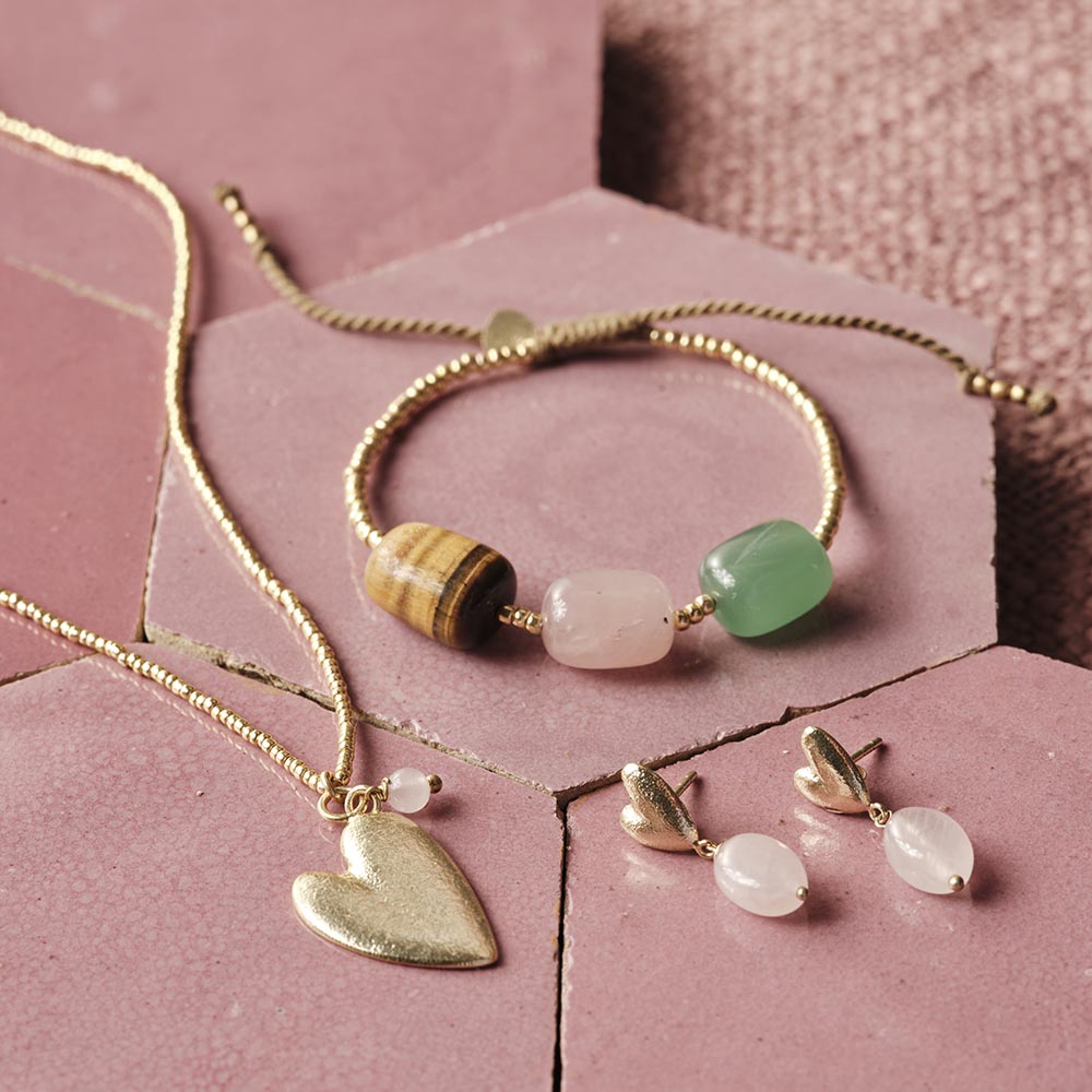 Dedicated trend hunters will spot our Heavenly Rose Quartz Earrings in no time. The vintage inspired heart studs bring your look up to date – the polished rose quartz gemstones add the finishing touches. (Self) love is all.