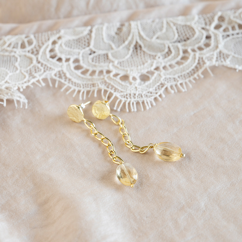 Citrine captures the light, you capture compliments. It's a common side effect of our Meditation Citrine Earrings. Attached to the mini coin studs, a delicate link chain features a faceted citrine gemstone. Handmade in Nepal, with love and lots of skills.