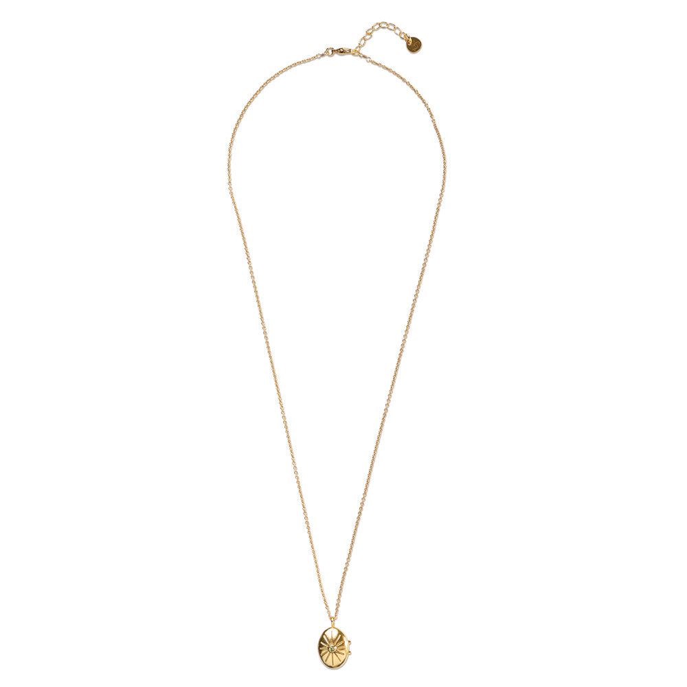 The locket of our Oval Locket Small Peridot Necklace is meant to keep precious tokens close to your heart. Like a photo with memories attached. At the center of engraved sunburst, a faceted peridot symbolizes pure compassion. Timeless style at top quality level. Designed to enjoy, made to last. Carefully handcrafted in Jaipur, India’s Capital of Gemstones.